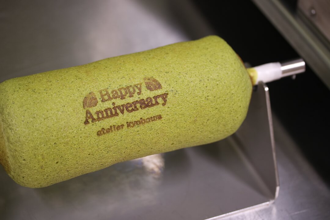 焼き上げたバームクーヘンに『Happy Anniversary』の焼印を押していただけます。