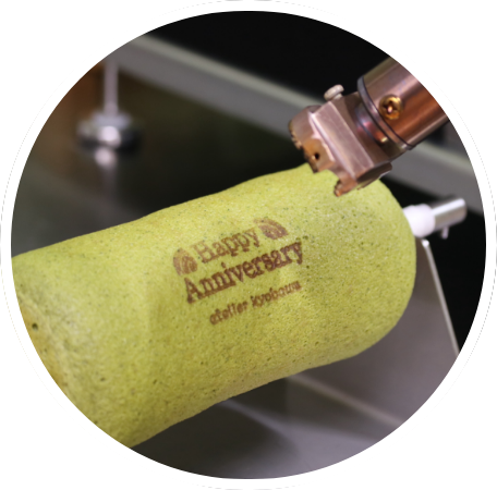 焼き上げたバームクーヘンに『Happy Anniversary』の焼印を押していただけます。