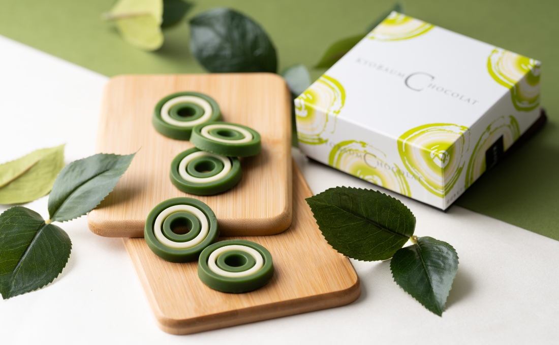 大人気「京ばあむ」の鮮やかな緑と白の色合いをモチーフに、宇治抹茶と豆乳を使用した香り高く、なめらかなくちどけのショコラです。